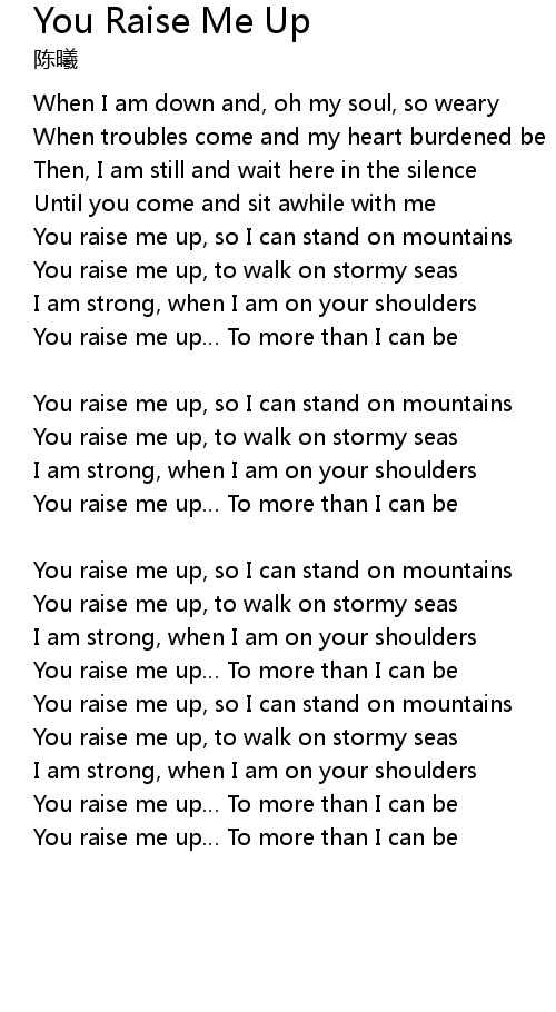 | You raise me up To more than I can be | |