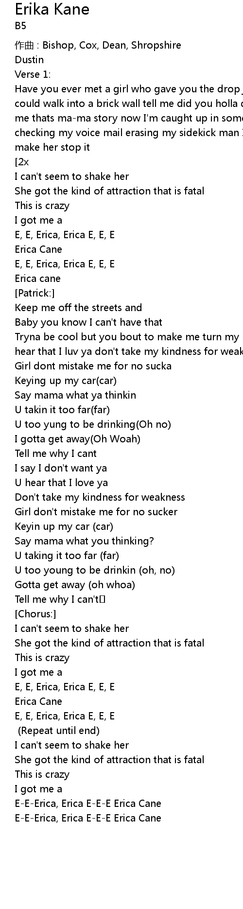 | E-E-Erica, Erica E-E-E Erica Cane |
