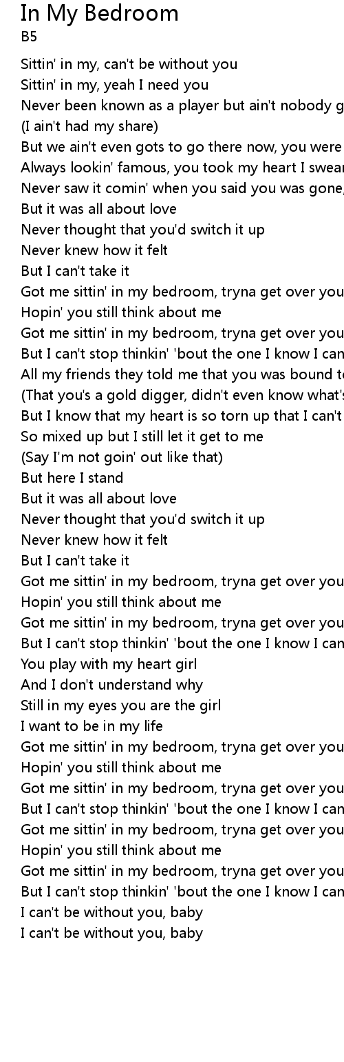 Sittin' in my, can't be without you |