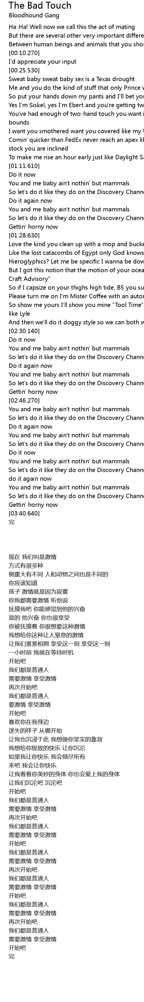 | [00:56.690] | You' ve had enough of twohand touch you want it rough you' re out of bounds |