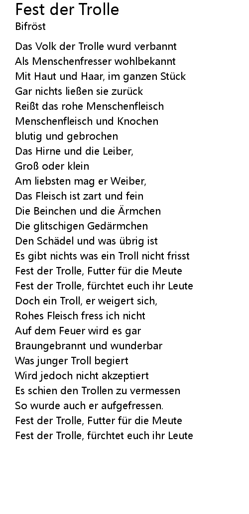 | Fest der Trolle, fü rchtet euch ihr Leute | |