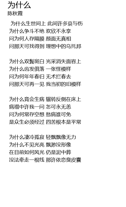 | 为什么生世间上 此间许多哀与伤 | |