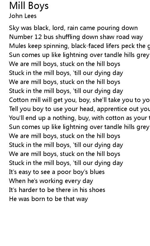 We are mill boys, stuck on the hill boys |