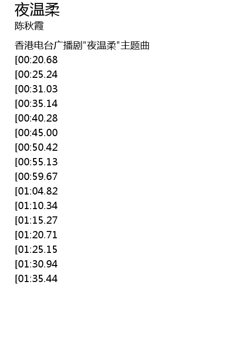 | [00:05.00] | 香港电台广播剧"夜温柔"主题曲 |