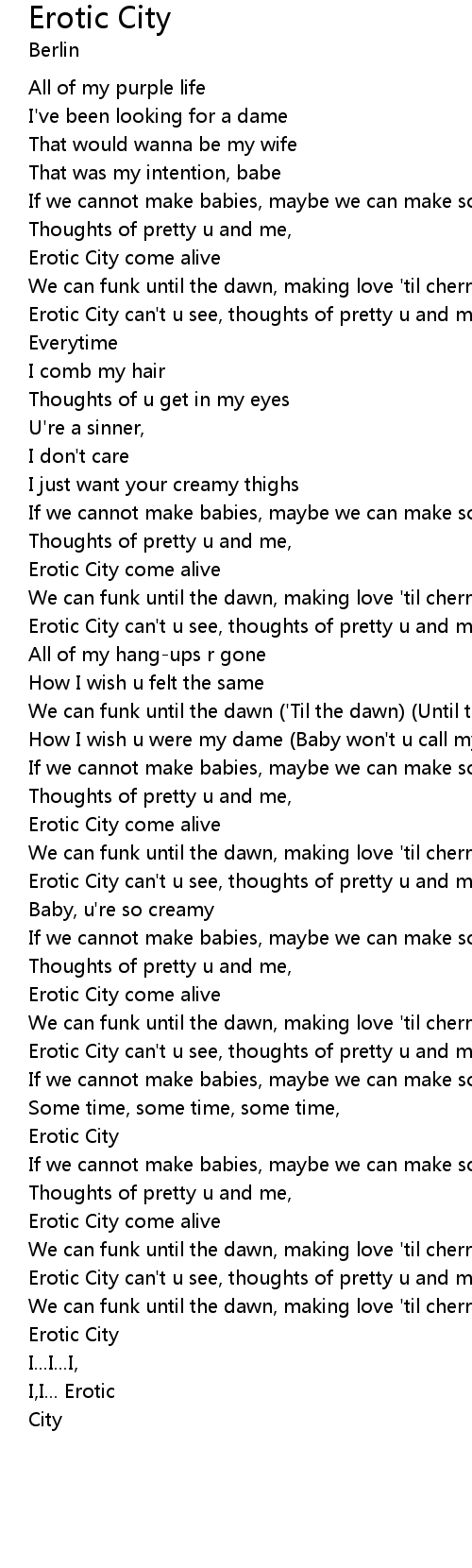 | Erotic City can't u see, thoughts of pretty u and me | |