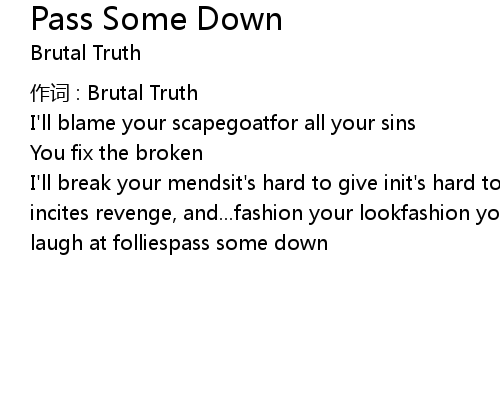 | I' ll break your mendsit' s hard to give init' s hard to bendthis world of deceit incites revenge, and... fashion your lookfashion your smilestack all policies laugh at folliespass some down |