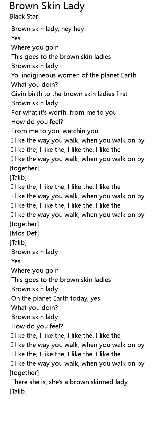 [Mos] Brown skin lady, hey hey |