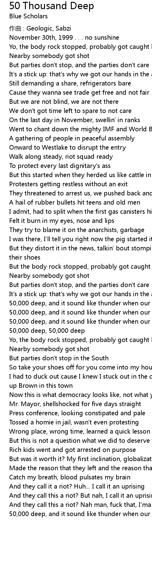 | Song | 50 Thousand Deep |