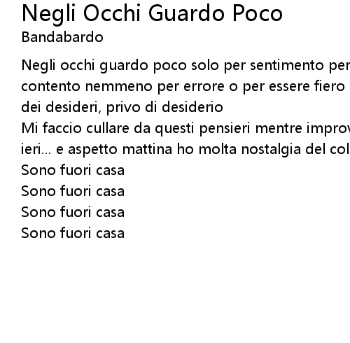 | Negli occhi guardo poco solo per sentimento perche lo sguardo e bello usarlo contento nemmeno per errore o per essere fiero potrei guardare il mondo privo dei desideri, privo di desiderio | |
