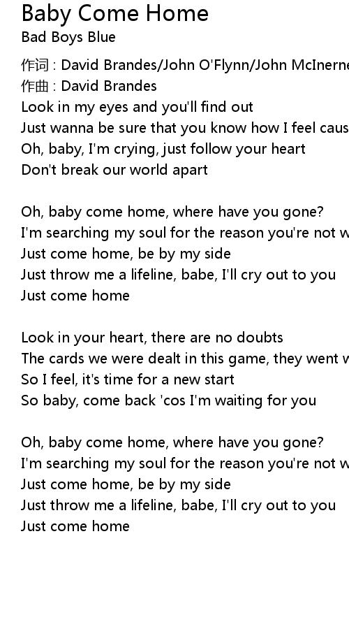 | Oh, baby come home, where have you gone? | |