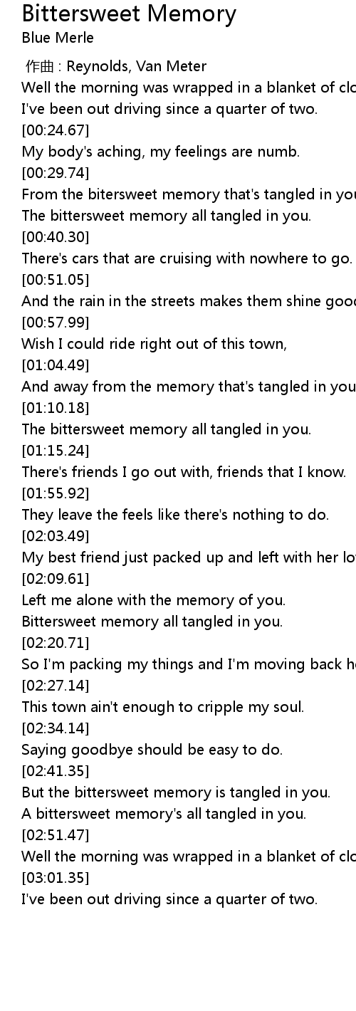 | [02:16.49] | Bittersweet memory all tangled in you. |