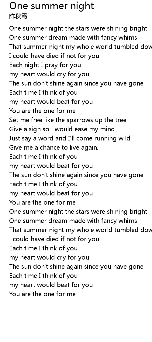 | [02:02.22] | One summer night the stars were shining bright |