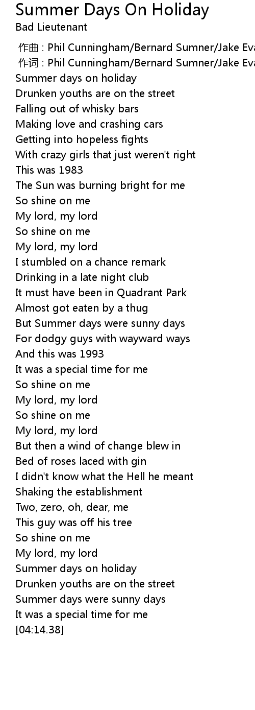 | [00:34.62] | Summer days on holiday |