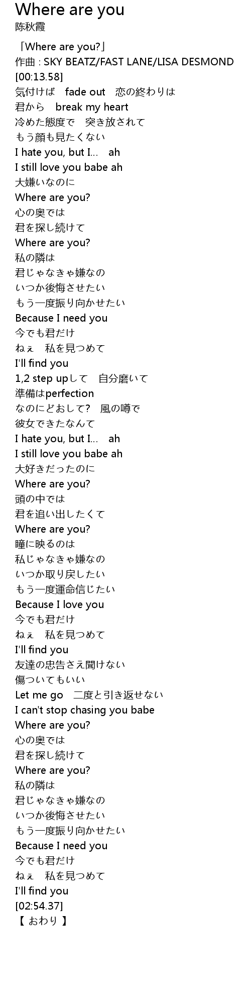 | [00:15.58] | 気付けば fade out 恋の終わりは |