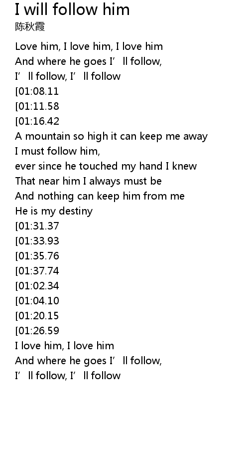 | [01:45.62][01:08.11][00:15.92] | I will follow him, |