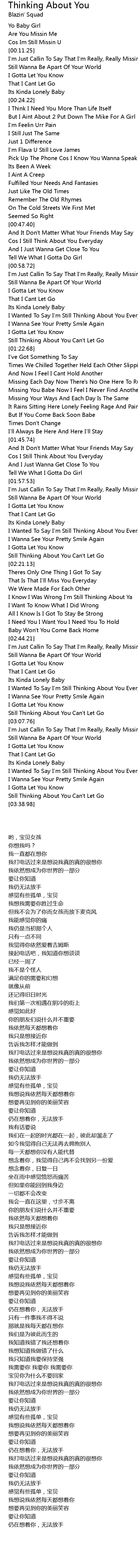 Missing You Babe Now I Feel I Never Find Another Lover |