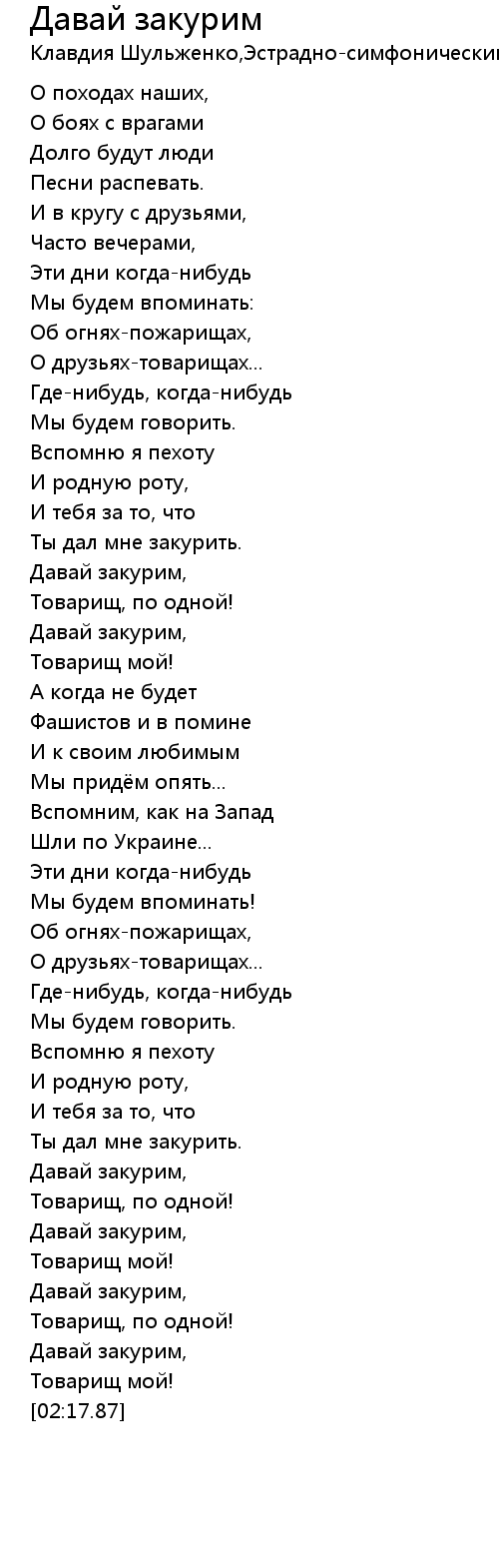 | [02:15.41] | Товарищ мой! |