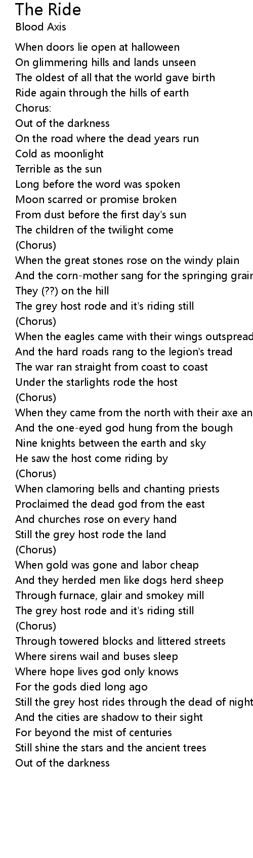 The grey host rode and it's riding still |