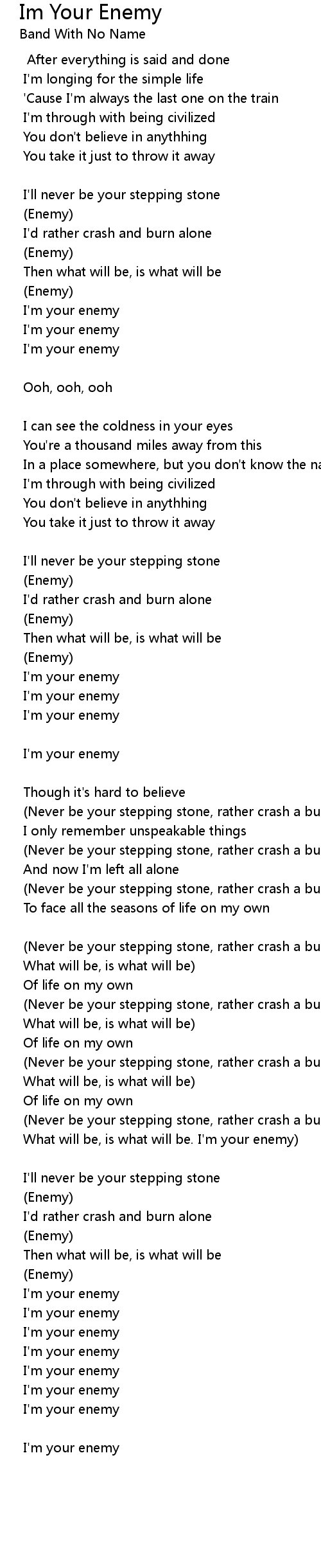 What will be, is what will be. I'm your enemy) |