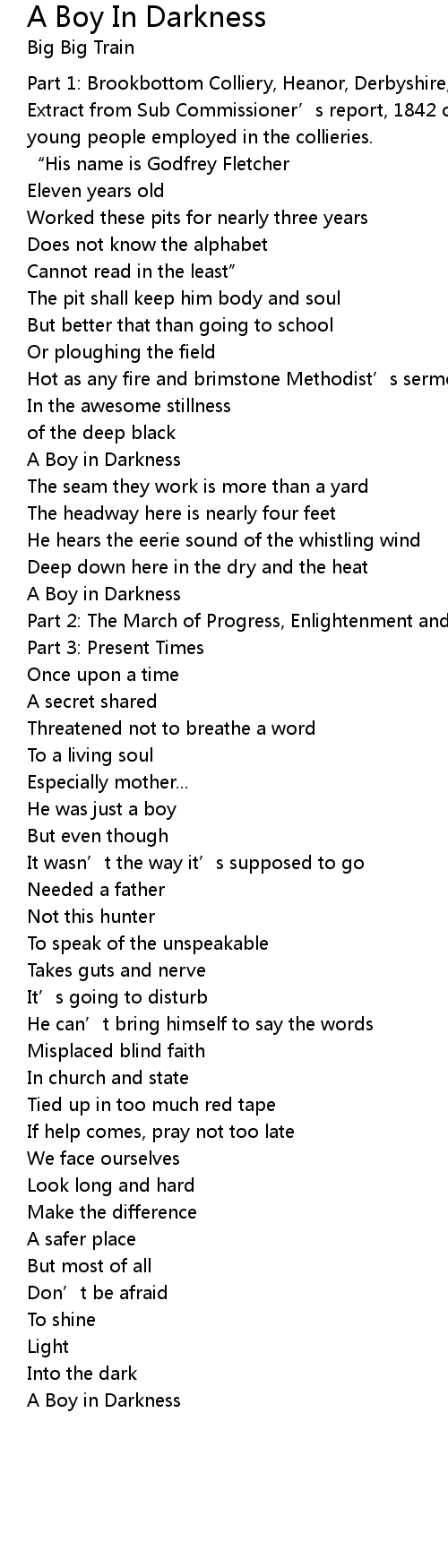 | Song | A Boy In Darkness |