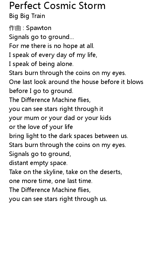 | Song | Perfect Cosmic Storm |