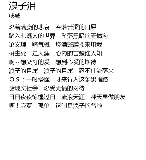 | 啊!寂寞 孤单 这咁是浪子的名啦 |