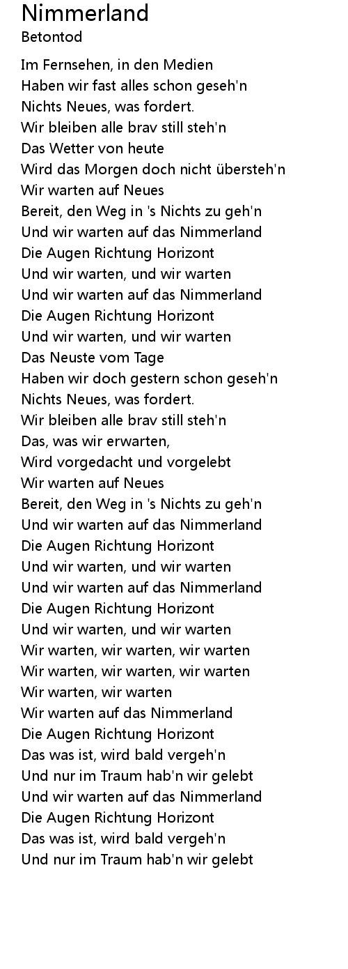| Und wir warten auf das Nimmerland | |