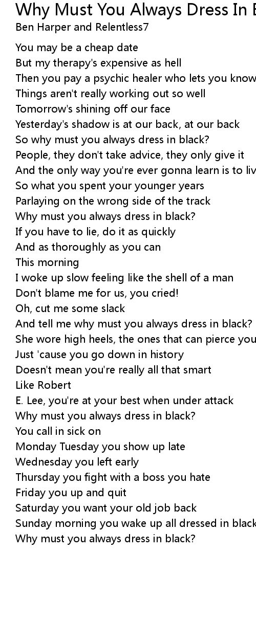 And tell me why must you always dress in black? |