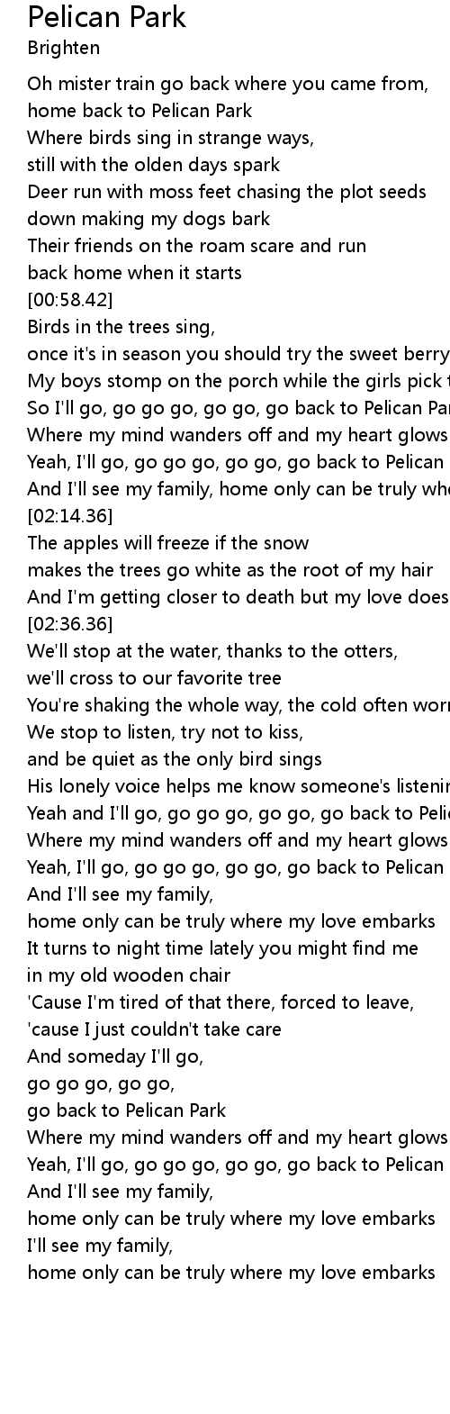 Yeah, I'll go, go go go, go go, go back to Pelican Park |