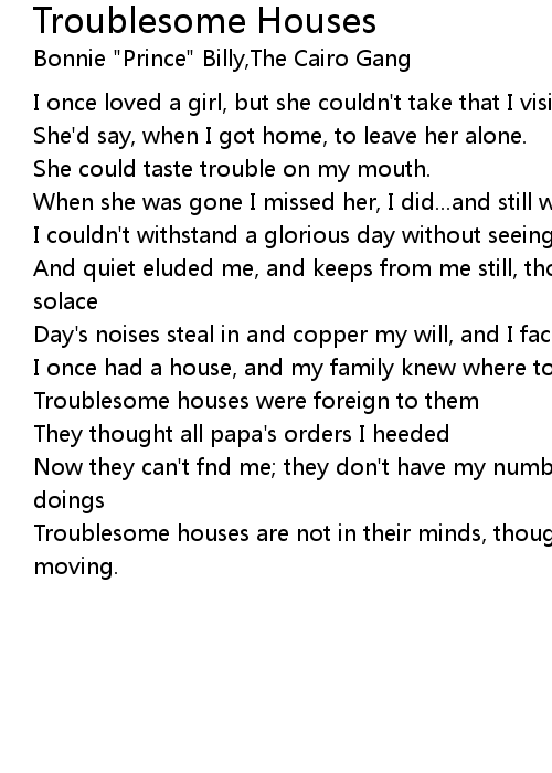 I once loved a girl, but she couldn't take that I visited troublesome houses. |