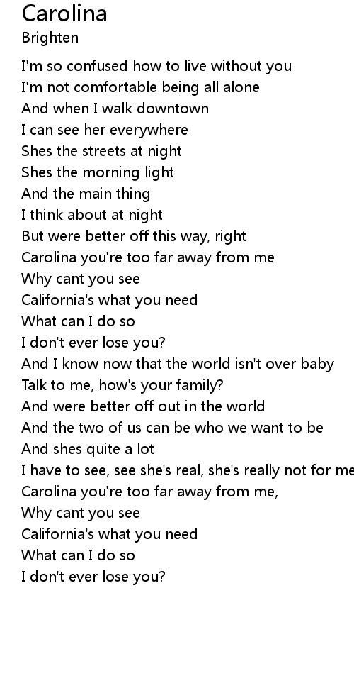 Carolina you're too far away from me |