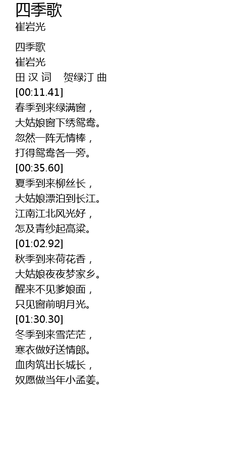 | [01:51.58] | 奴愿做当年小孟姜。 |