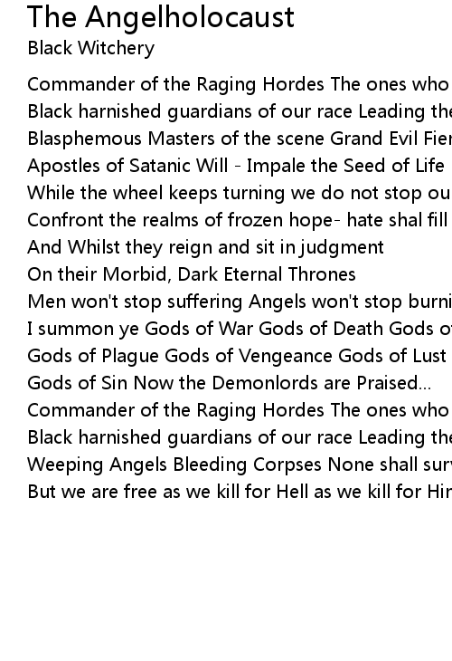 But we are free as we kill for Hell as we kill for Him as we Rule..... |