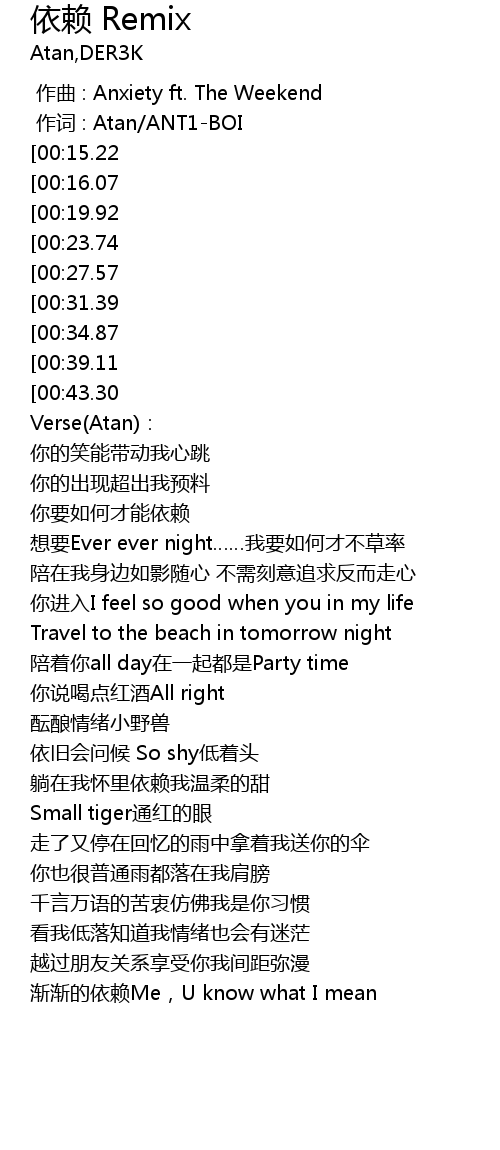 | [01:52.06][00:31.39] | 依赖 依赖 |