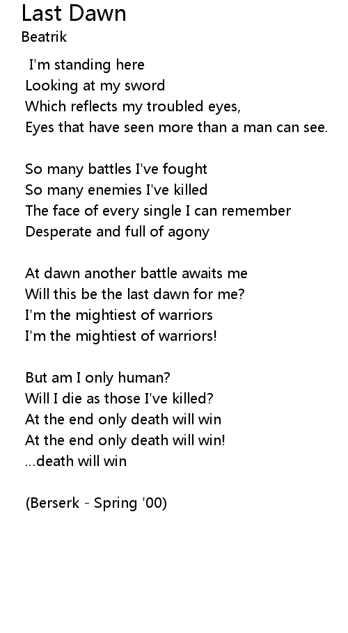 | At dawn another battle awaits me | |