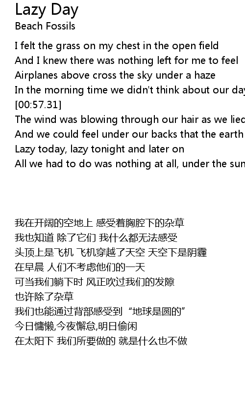 | [01:42.35] | Lazy today, lazy tonight and later on |