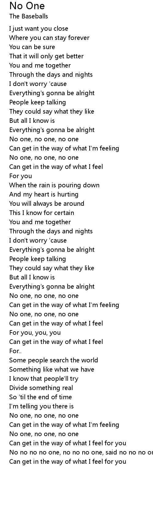 No no no no one, no no no one, said no no no one, sain no one, I said no one... |