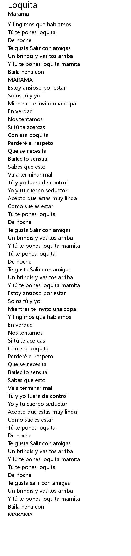 | [02:08.000] | Y tú te pones loquita mamita |