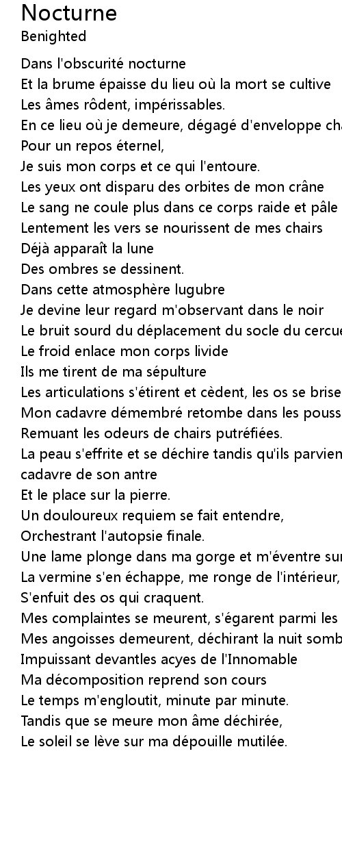 | Mes complaintes se meurent, s'e garent parmi les tombes. | |