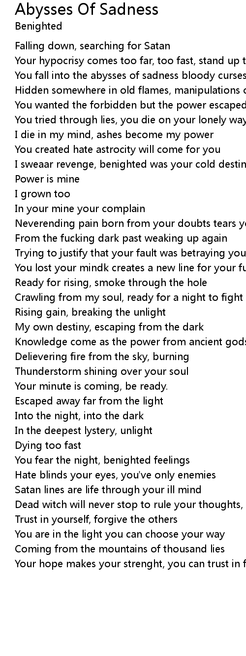 | You fall into the abysses of sadness bloody curses from the one of the unlight | |