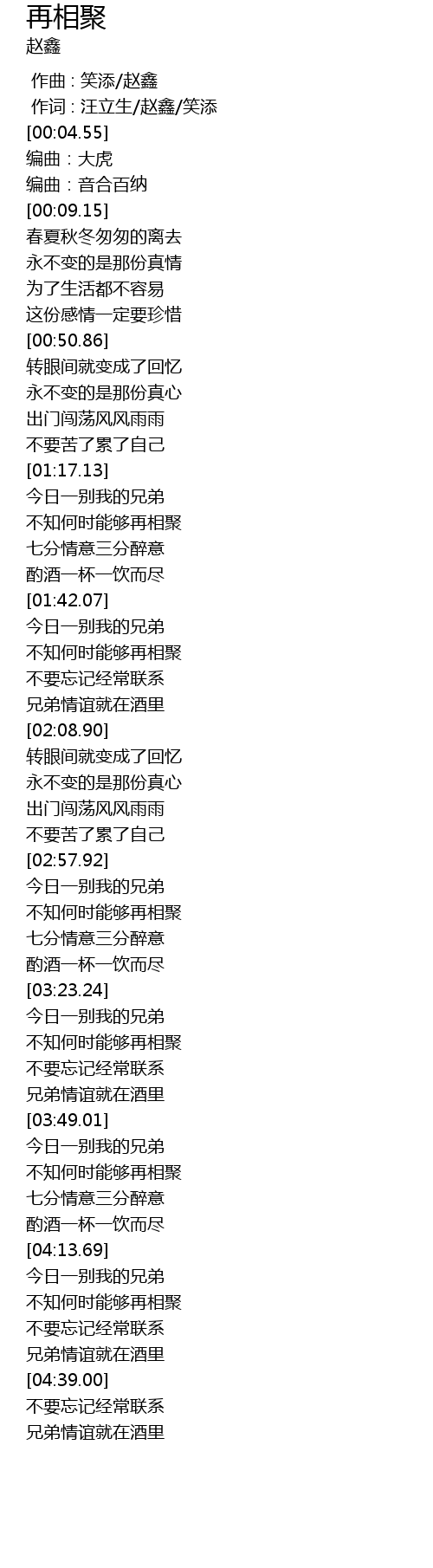 | [00:01.000] | 作词 : 汪立生/赵鑫/笑添 |