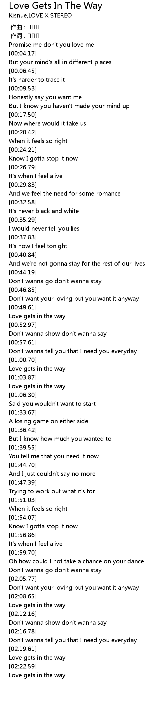 | [02:17.45] | Don't wanna tell you that I need you everyday |
