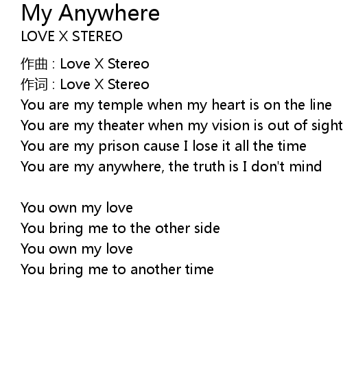 | You are my anywhere, the truth is I don' t mind | |