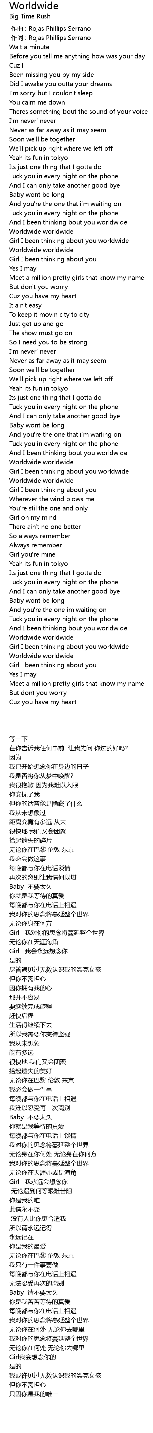 | [01:10.790] | Girl I been thinking about you worldwide |