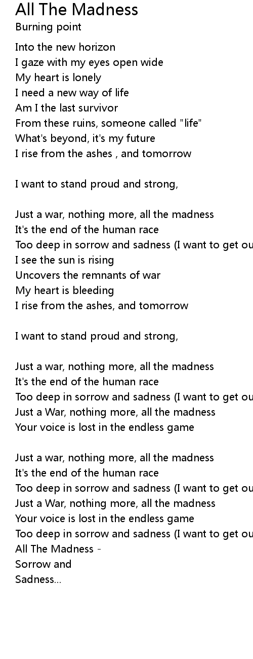 Too deep in sorrow and sadness (I want to get out of this place ) [Chorus] |