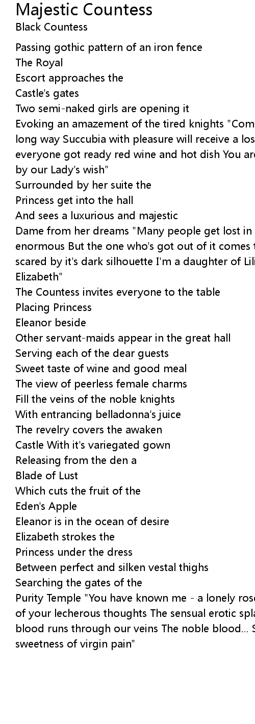 Dame from her dreams "Many people get lost in a pine forest's mouth - it's enormous But the one who's got out of it comes to my house I hope you was not scared by it's dark silhouette I'm a daughter of Lilith and Samael - my name is Elizabeth" |