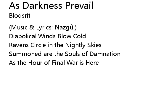 | Song | As Darkness Prevail |