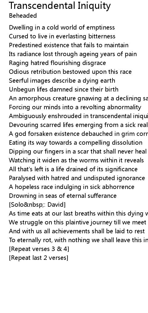 Ambiguously enshrouded in transcendental iniquity |