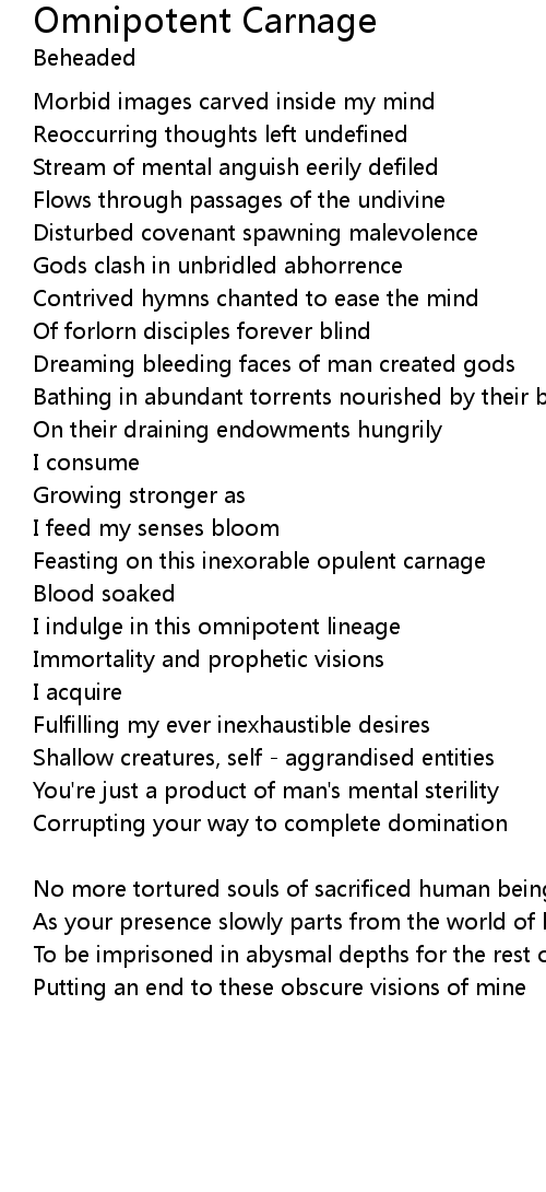Feasting on this inexorable opulent carnage |