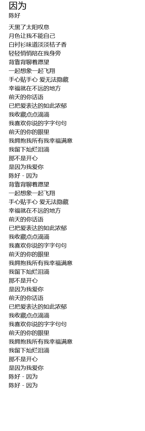 | [01:34.650] | 陈好-因为 |